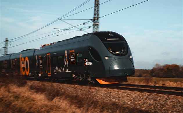 Souprava čínského výrobce CRRC pojmenovaná Sirius v barvách Leo Expressu (14. prosince 2020)