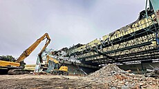Bourání zimního stadionu v Hradišti pokračuje. Bagry se zakously do střechy![]() |