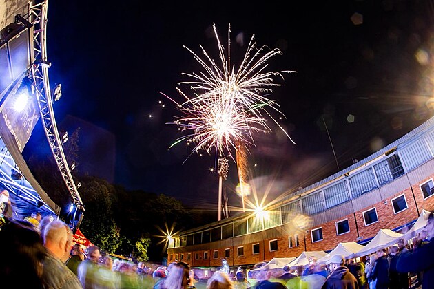FC Zlín oslavil postup do fotbalové Chance ligy i ohňostrojem po posledním zápase sezony. (květen 2025)
