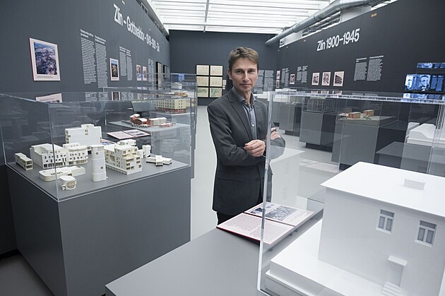 Ředitel Krajské galerie Václav Mílek ukazuje novou stálou expozici. (listopad 2024)