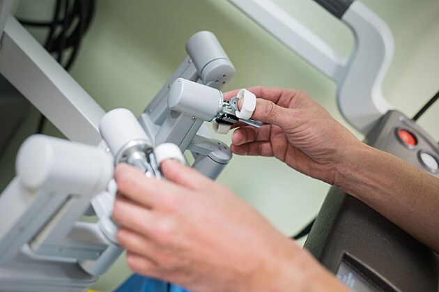 Robotický systém da Vinci lékaři ovládají za pomocí konzole.