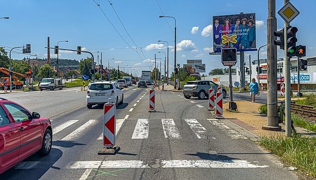 Křižovatka ve Zlíně Loukách u nákupního centra Terno prochází modernizací světelného zařízení. (červenec 2025)