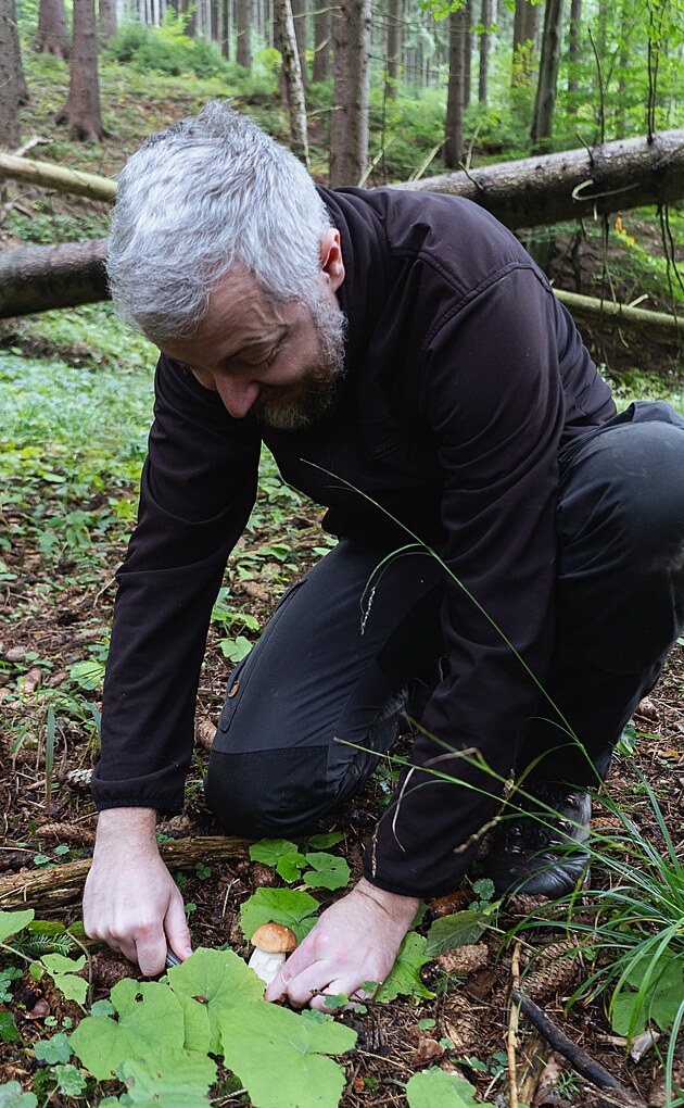 Sběr hub v lesích nedaleko Ploštiny na Vizovicku.