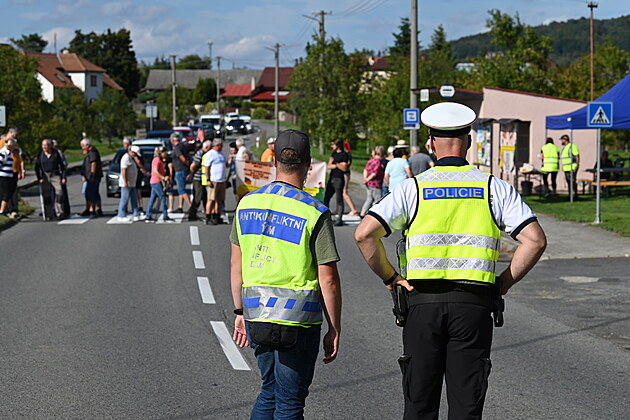Lidé v Horním Lapači na Kroměřížsku blokovali silnici mezi Holešovem a Fryštákem na protest proti nedokončené dálnici. (11. září 2025)