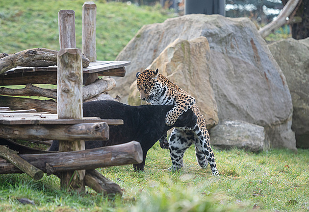 Mladý jaguár Akabo poznává venkovní výběh zlínské zoo, samici Yunu respektuje![]() |