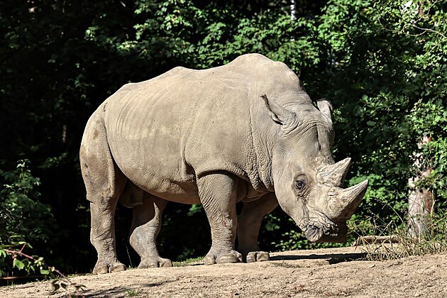 Nosorožčí samec Kashka je ve zlínského zoo od roku 2012. (říjen 2024)