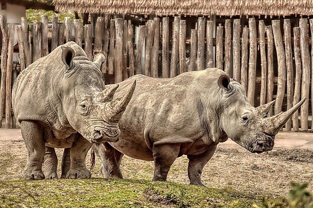 Nosorožčí samice Zanta (vlevo) a Naya ve zlínské zoo (říjen 2024)