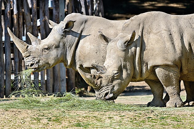 Nosorožčí samice Zanta (vpravo) a Naya ve zlínské zoo (říjen 2024)