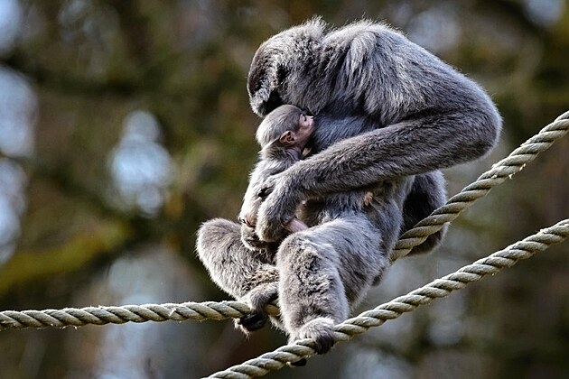 Pár gibonů stříbrných ve zlínské zoologické zahradě má první mládě. Narodilo se na začátku února 2019.